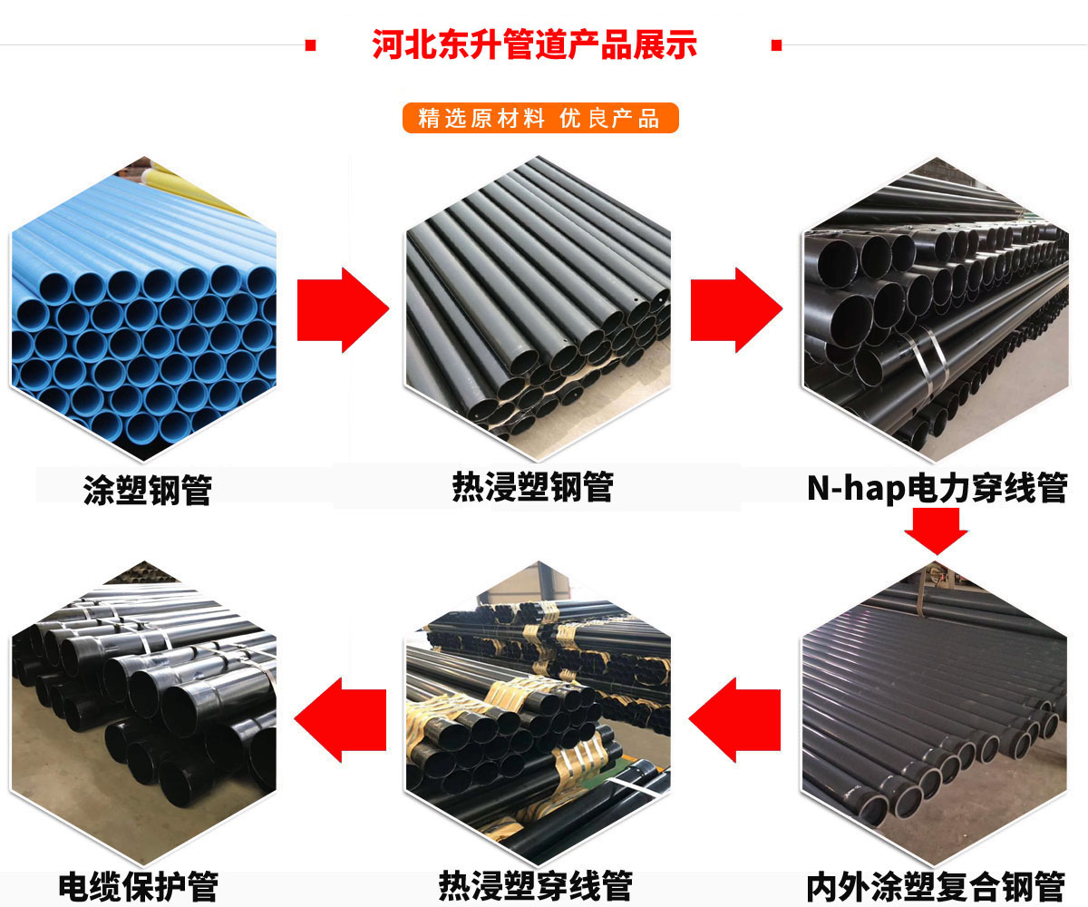 河北東升管道制造有限公司主營:熱浸塑鋼管,N-hap電力穿線管,電纜保護管等產(chǎn)品